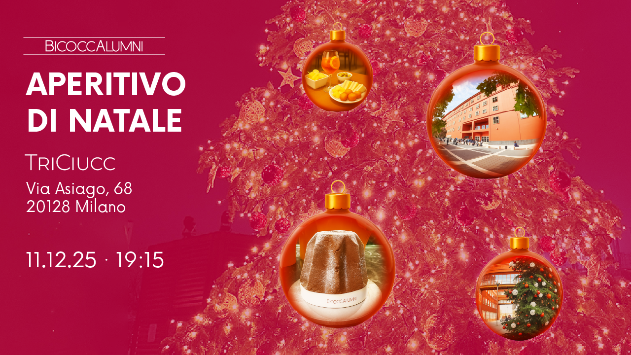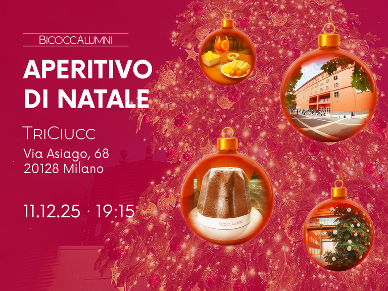 Vi aspettiamo l'11 dicembre per l'Aperitivo natalizio di BicoccAlumni, un momento conviviale dedicato a tutti gli Alumni dell'Università degli Studi di Milano-Bicocca. Un’occasione perfetta per ritrovarsi, conoscere i nuovi soci, scambiarsi gli auguri e festeggiare tutti insieme l'arrivo delle festività.